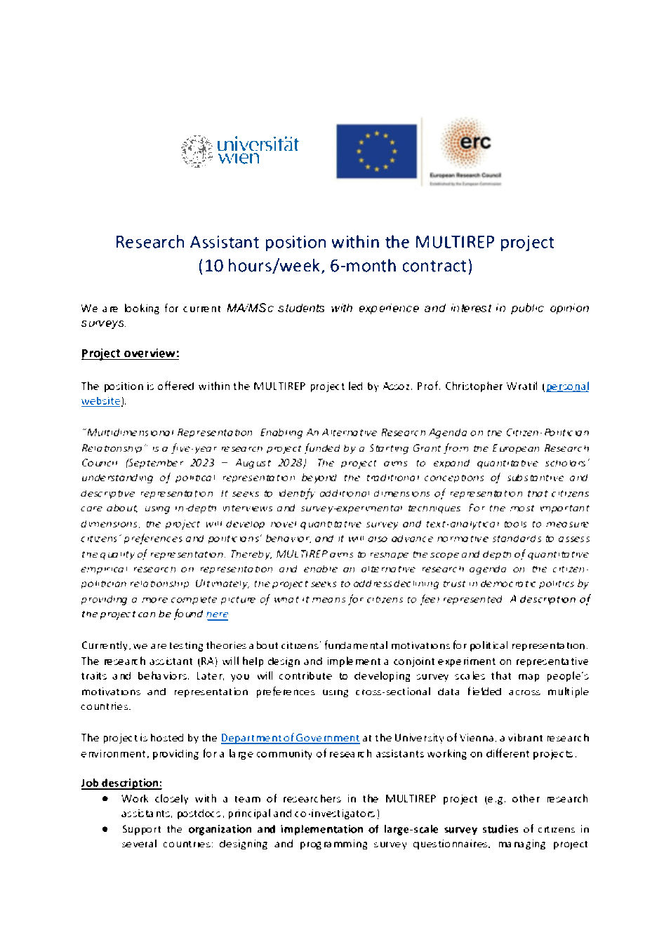 Work closely with a team of researchers in the MULTIREP project (e.g. other research assistants, postdocs, principal and co-investigators)